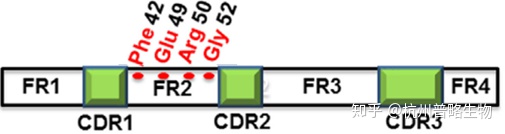 b、人源化簡單:重鏈抗體VH和單域抗體VHH的序列同源性較高,對VHH區(qū)進(jìn)行適當(dāng)?shù)母脑旒纯傻玫饺嗽椿募{米抗體。