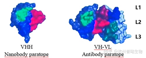 3、親和力高:從VH和VHH的結(jié)構(gòu)可以看出,VHH的高變區(qū)CDR3更長一些,使其更容易與抗原發(fā)生特異性結(jié)合,且更緊密穩(wěn)定。