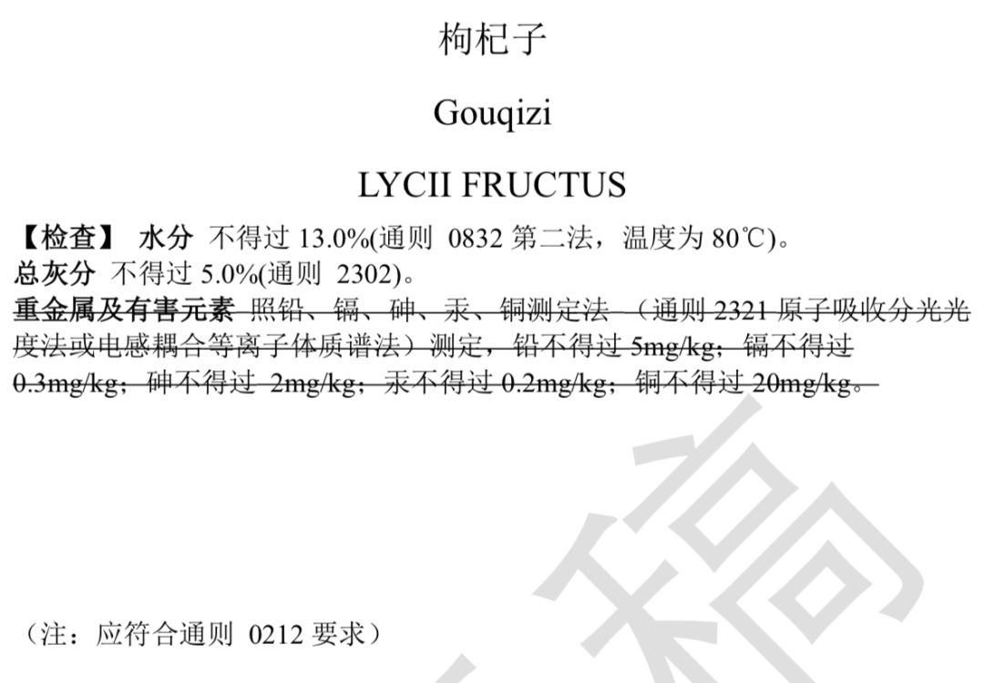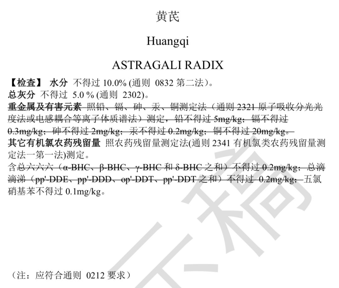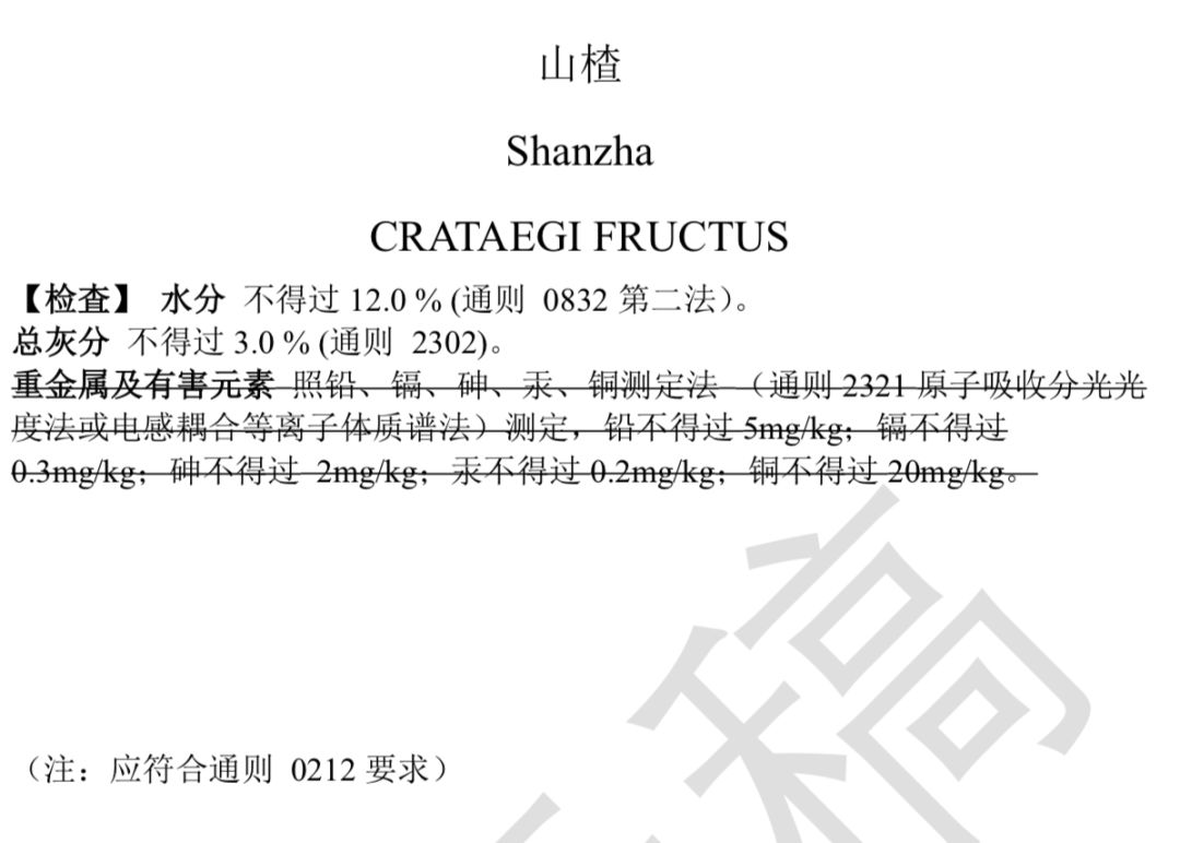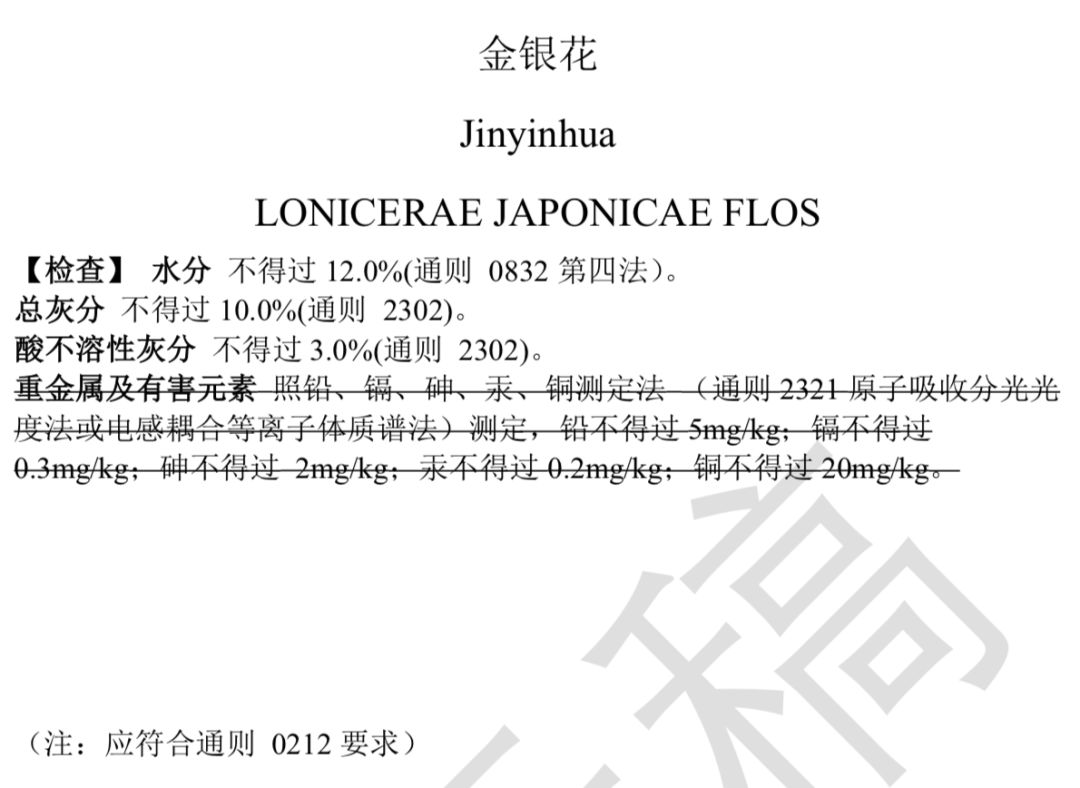 提示:下面劃線刪除重金屬及有害元素,并不是不要做哦,而是因為通則已有要求,所以各品種就不需再單列了。